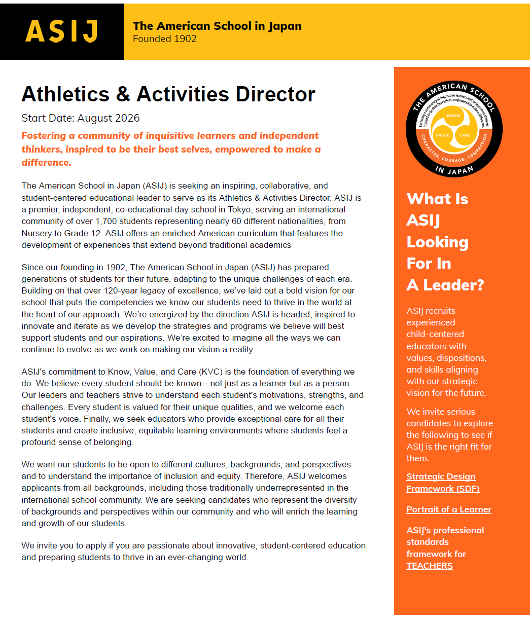 Athletics and Activities Director at The American School in Japan in Japan