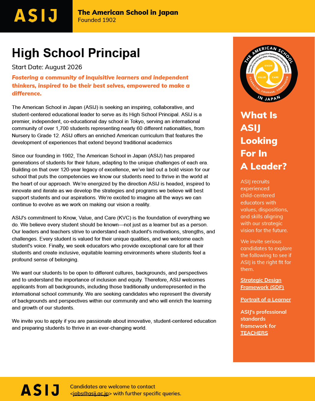 High School Principal at The American School in Japan in Japan